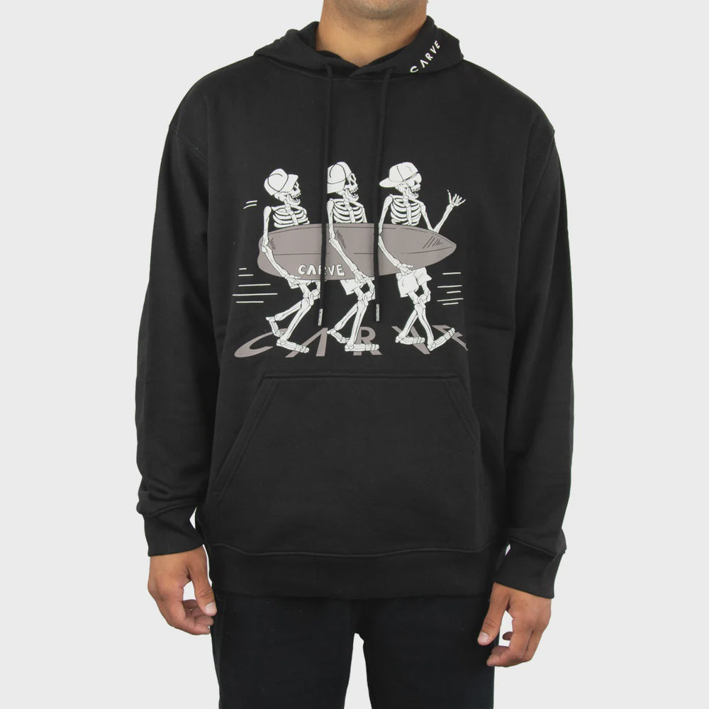 Boy's pull over hooded sweatshirt with Carve graphic chest print on front.