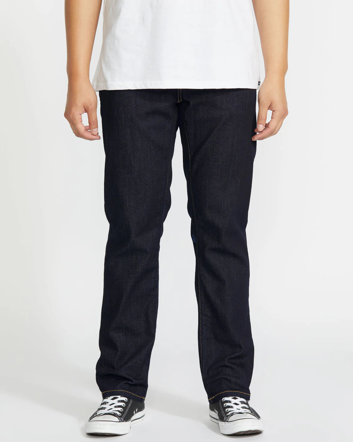 Blending modern style and classic comfort, these slim, stretch denim jeans boast eco-friendly production. Signature Volcom detailing meets a contemporary rinse finish for the ultimate in casual cool.